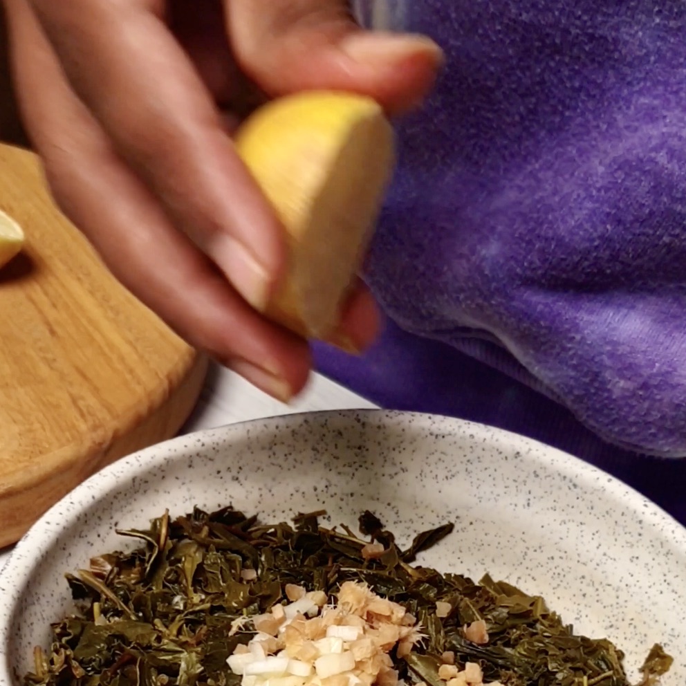 - - Add your chopped garlic ginger and lemon juice.